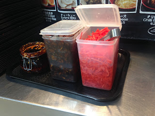 I also notice a huge tub of ginger, chilli and also a smaller tub of chilli oil. Given I was feeling a bit under the weather, I order the garlic tonkosu ramen for $11.50.